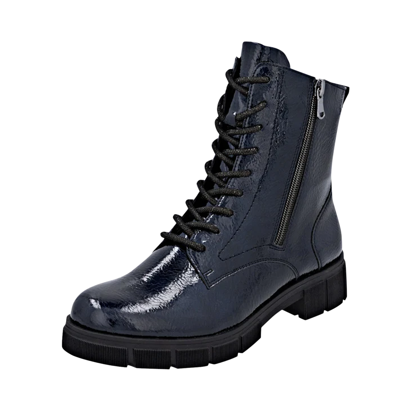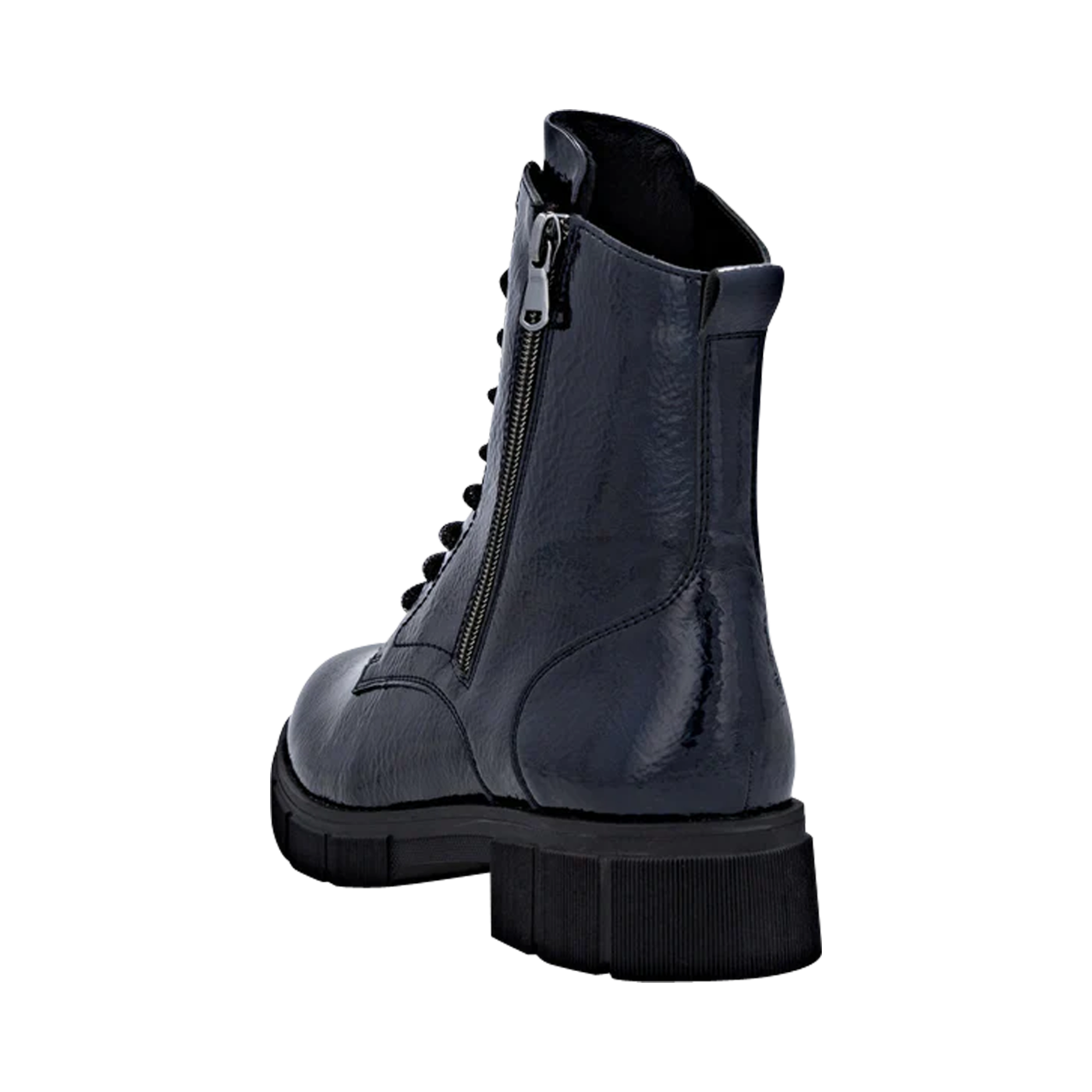 Restez stylée et bien au chaud tout l’hiver avec ces superbes bottes en cuir verni bleu marine foncé. Dotées d’un laçage à l’avant et d’une fermeture éclair extérieure, elles s’enfilent facilement tout en assurant un excellent maintien. La doublure en molleton doux et la semelle intérieure amovible offrent un parfait équilibre entre confort et élégance. Ces bottes vous garderont au chaud tout au long de l’hiver canadien, sans jamais compromettre votre style.